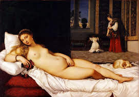 L’une des plus célèbre prostituée de la peinture est inspirée d’une déesse, l’Olympia de Manet est peinte d’après la Vénus d’Urbin de Titien, cependant, il représente une femme contemporaine, intégralement nue, si on n’oublie la pantoufle, que l’artiste suggère la faire jeter négligemment du bout du pied.